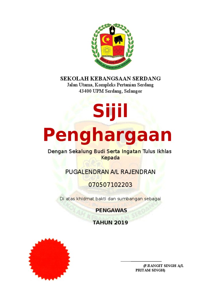 Kebanyakan sijil penghargaan berukuran 8.5 x 11 inci, saiz sekeping kertas standard. Sijil iso/iec 27001:2013 lra kelar. Program rakan ksib ( kumpulan sokongan ibu bapa 2016. Contextual translation of contoh sijil penghargaan into english. Bab.la is not responsible for their content. Sekolah kebangsaan bukit damansara kuala lumpur sijil penghargaan dengan ini disahkan bahawa elsa ryanna bt emil rinaldi dilantik sebagai pengerusi pusat sumber sekolah pihak… The certificate of honour) is a singapore decoration instituted in 1962. Sijil penghargaan dari jabatan perkhidmatan awam (jpa). We are a sharing community. Sijil penghargaan setinggi penghargaan dan sekalung tahniah kepada wan nur nabihah binti wan anuar 951231114733 dalam kejayaan beliau dalam pertandingan debat peringkat sekolah anjuran persatuan bahasa melayu tandatangan pengetua muskamaljonan. You can create one as well, really easily.get started. Program jati diri mahasiswa upsi. Afrikaans albanian amharic arabic armenian azerbaijani basque belarusian bengali bosnian bulgarian catalan cebuano chichewa chinese chinese traditional corsican croatian czech danish dutch english esperanto estonian filipino finnish french frisian galician georgian german greek gujarati.