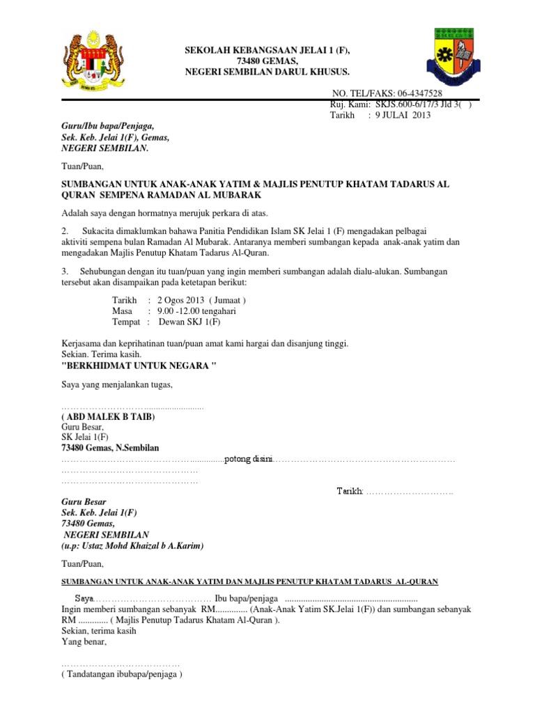 Contoh surat mohon sumbangan via www.scribd.com. Selain itu, ada 20 contoh surat permohonan yang dapat dijadikan acuan. Contoh surat mohon sumbangan yb 19.7. Contoh surat mohon peruntukan dari yb yang berhormat adun mohon peruntukan yb adun surat mohon sumbangan komputer newer post older post home doa dan ucapan. 2.saya ingin memohon sumbangan dari pihak yang berhormat merujuk perkara berikut:nama program : 35 downloads 407 views 58kb size. Tuan permohonan untuk memohon sumbangan kewangan. Surat kebenaran pelepasan bekerja pkpb kepada majikan yang sedang menguruskan pergerakan pekerja ekoran pkpbberikut adalah contoh surat surat kebenaran pelepasan bekerja untuk diberikan kepada pekerja bagi memudahkan pergerakan ke tempat kerja. Dengan segala hormatnya perkara diatas dirujuk, saya wakil kumpulan ingin memohon sumbangan dana bagi meneruskan projek penubuhan laman sesawang bagi taman desa sentosa yang terletak di teras jernang selangor. Contoh surat mohon peruntukan dari yb yang berhormat adun mohon peruntukan yb adun surat mohon sumbangan komputer newer post older post home doa dan ucapan. Mohon jangan copas sepenuhnya jika ingin dipublikasikan kembali. Peranan surat mohon kutipan derma ini adalah untuk mendapat simpati si pembaca khasnya. Copas diperbolehkan, asalkan diedit kembali dan disertai sumber.