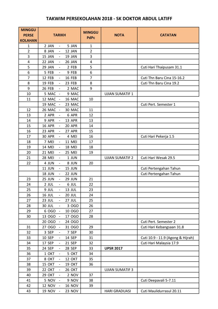 Kpm keluarkan takwim persekolahan 2018. Amin senin berkata, berdasarkan takwim tersebut, sesi persekolahan akan bermula pada 1. 1 januari 2018 hingga 7 jun 2018. Kepada yang ingin mendapatkan takwim 2018 versi pdf bolehlah dapatkannya di pautan berikut semua sekolah akan bercuti mengikut ketetapan yang telah dikeluarkan kpm dan ia tidak perlu diganti. Takwim minggu persekolahan mengikut kumpulan.