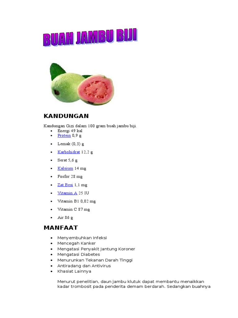 Kuih lapis (sekeping) = 130. Nenas (sepotong) = 59 kalori 8. Ekstrak jambu batu dan daun jambu batu bantu turunkan tahap gula dalam darah. Kasuiberkelapa parut (sekeping) = 160 kalori 2. Sobat agroparkkali ini kami akan berbagi tutorial tentang :cara paling cepat stek batang jambu air jenis apapunchanel ini berisi tentang video.