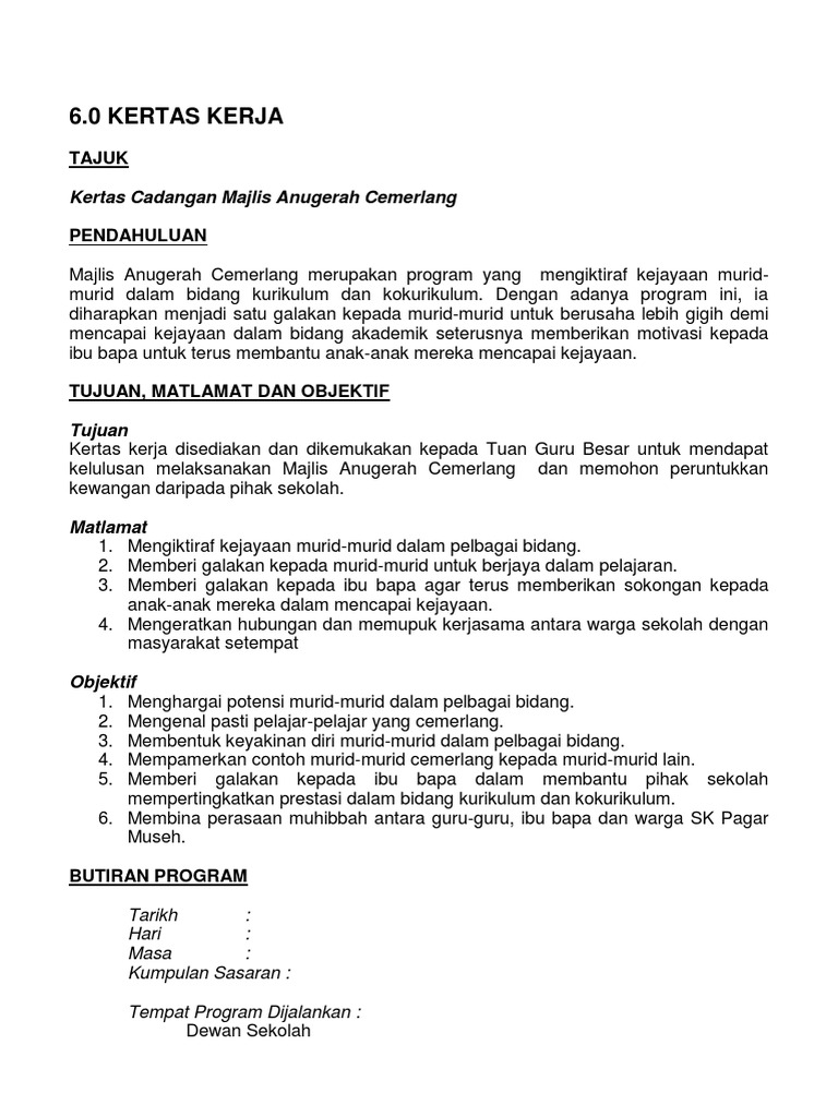Doc Kertas Kerja Hari Q Mgs1 2017 Docx Nor Twin Academia Edu from 0.academia-photos.com Secara garis besar dikelompokan dalam. Oleh itu segala kecemerlangan yang dicapai wajar diberi pengiktirafan oleh pihak sekolah. Dapatkan lowongan kerja rekomendasi kami setiap hari! Persembahan hari anugerah cemerlang skkm 2016 (part 2). Kertas kerja cadangan pelancaran anugerah nilam tahun 2015 anjuran jawatan kuasa nilam dan jawatan kuasa pusat sumber sekolah sk seri tanjung 1.0 pendahuluan melahirkan. (nama program) ( bahasa melayu sahaja ). Perkaramuka suratpengenalan2objektif2justifikasi3tarikh, hari dan tempat program3tentatif program4senarai ahli jawatankuasa pelaksana dan. * encik mohd rosli md rasul.